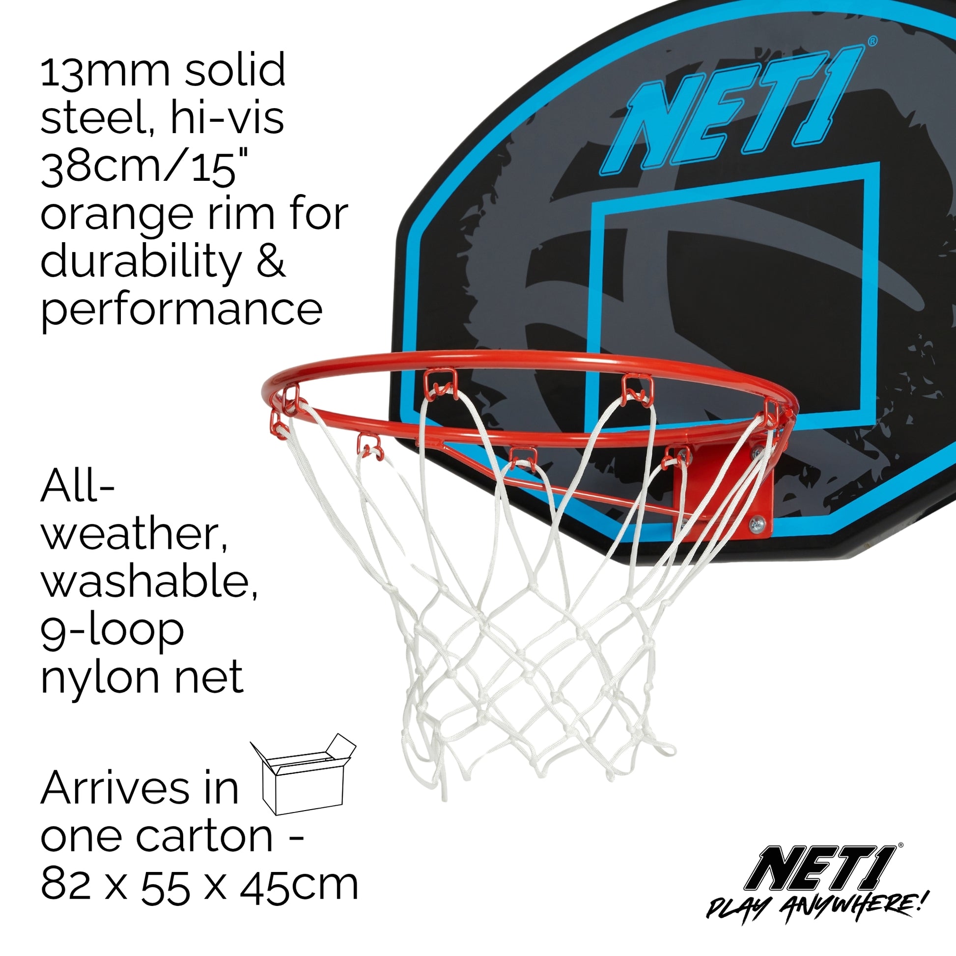 The NET1 Wall Mounted Backboard is easy to install (a wall mounting kit and a 2.5 mm backplate are included) and sturdy, perfect for ballers five and under just starting out.